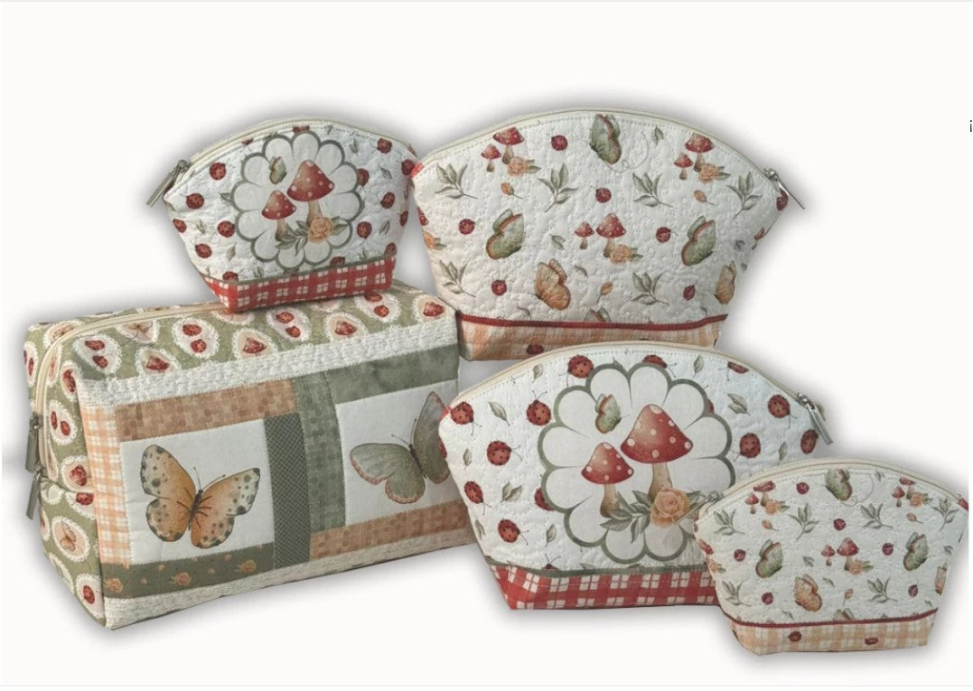💡 Características del panel: Cada neceser viene con su diseño completo impreso, incluyendo todas las piezas necesarias. Solo necesitas cortar, añadir forro, guata y cremalleras para crear 5 neceseres profesionales.